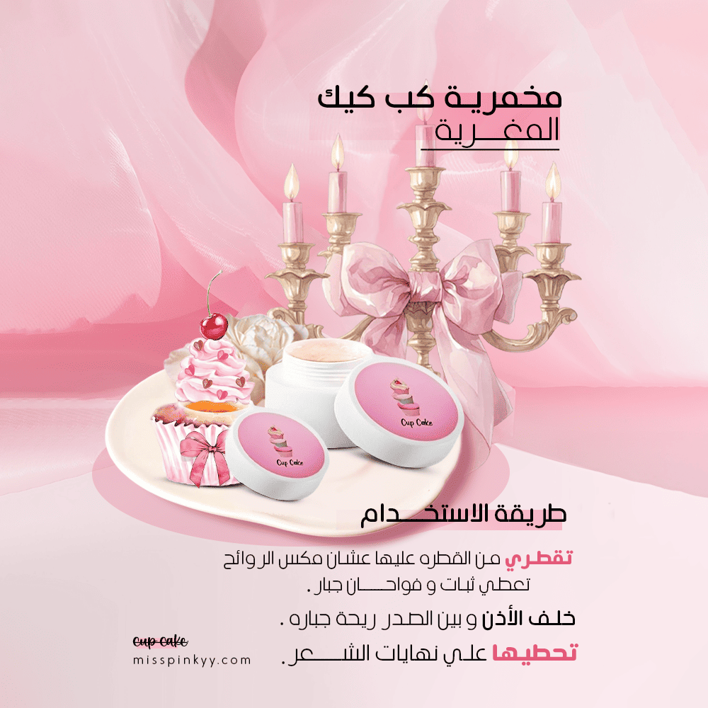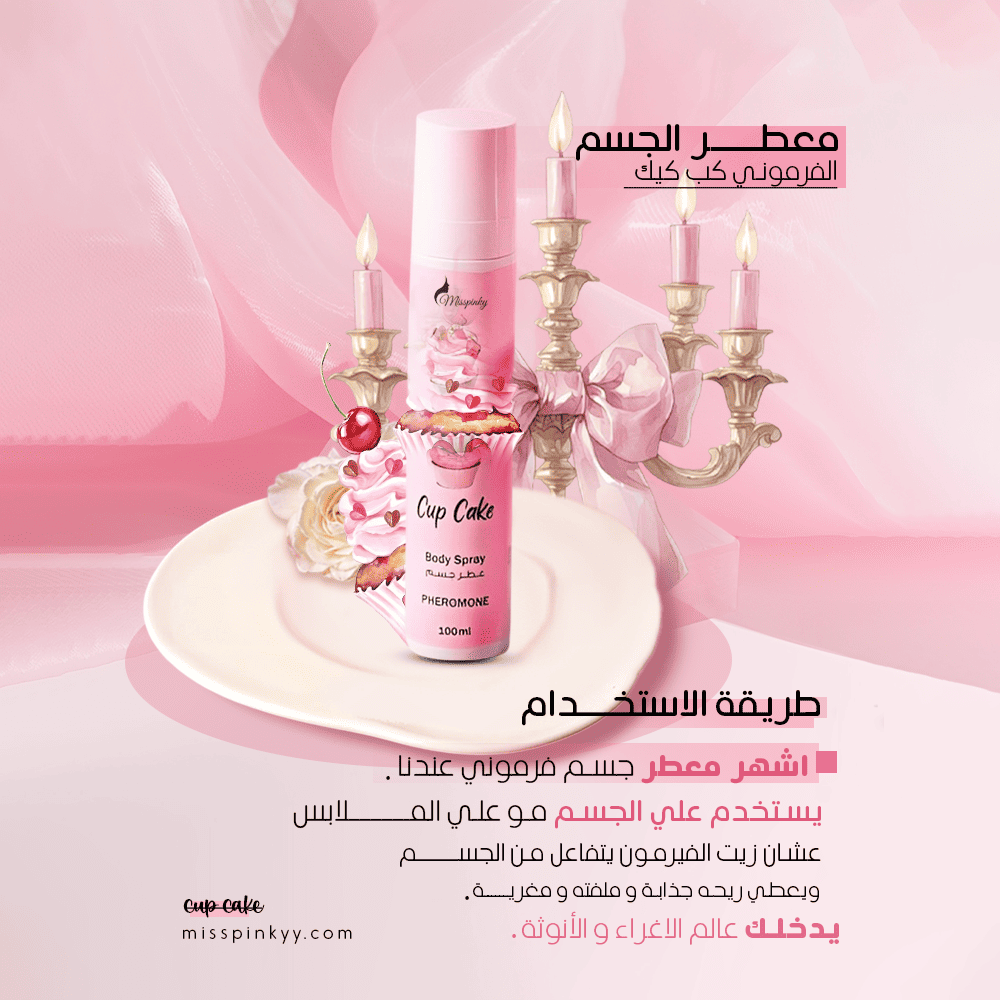 استعدي لتجربة غير عادية وشهية للمتزوجين و المقبلين على الزواج مع مجموعة عطور للجسم كب كيك الفيرمونية من مس بينكي و استمتعوا برائحة حلا الكب كيك الشهي اللذيذ الذي يأسر حواسكم كلها و ينقلكم الى عالم الحلويات و احصلوا على رائحة لا تُقاوم مع زيت الفيرمون الجذاب